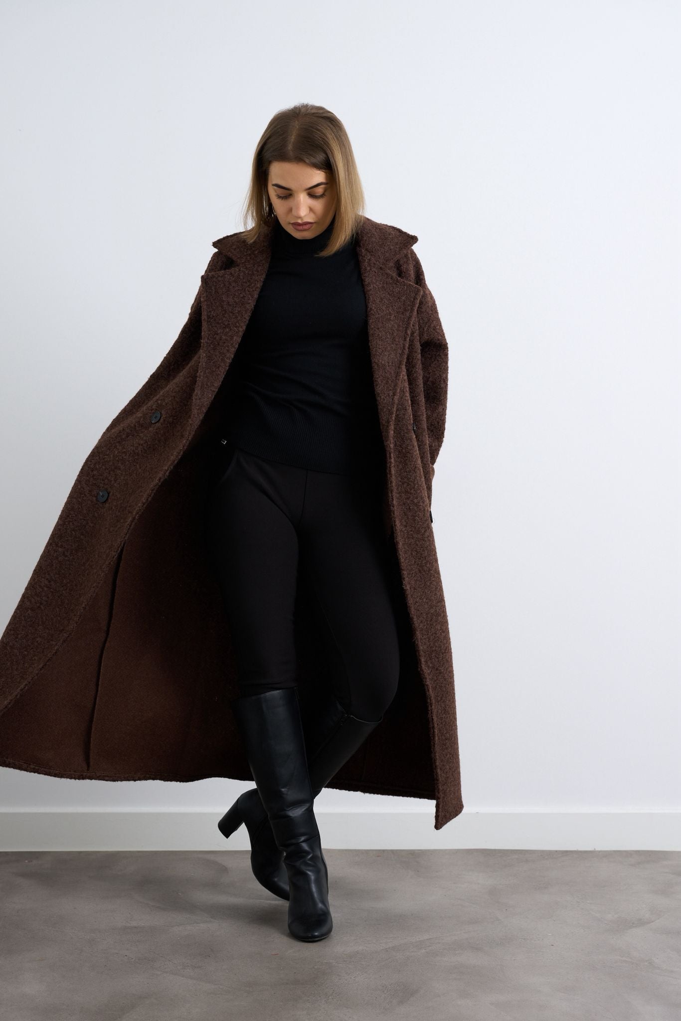 Brown Bouclé Coat is supplied by La Boheme Dingle, County Kerry.